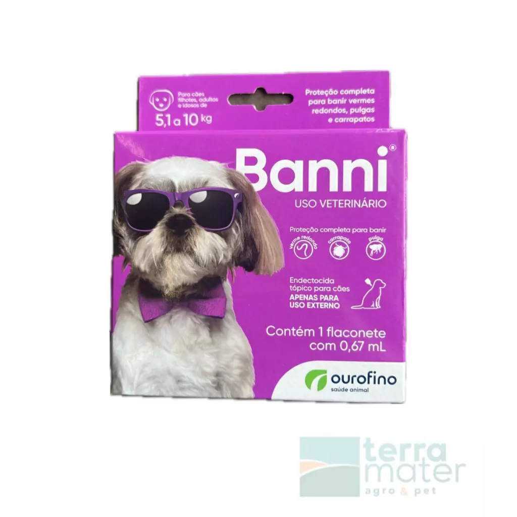 Indicações: Banni é um endectocida tópico para cães composto pela associação entre fipronil e moxidectina para tratamento de infestações por pulgas, carrapatos e por helmintos gastrointestinais.